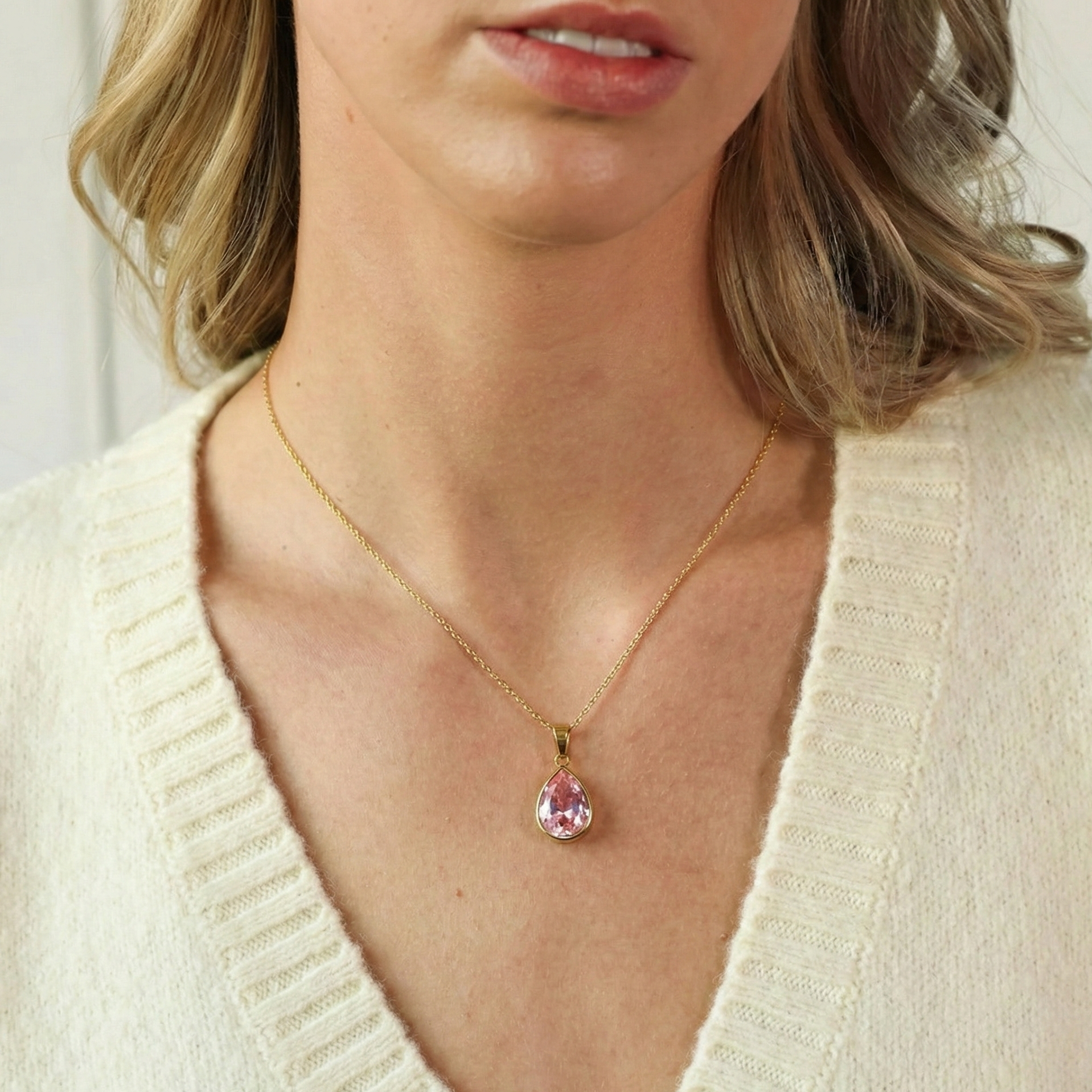 24% İndirimdeKristal Pembe Taşlı Kolye