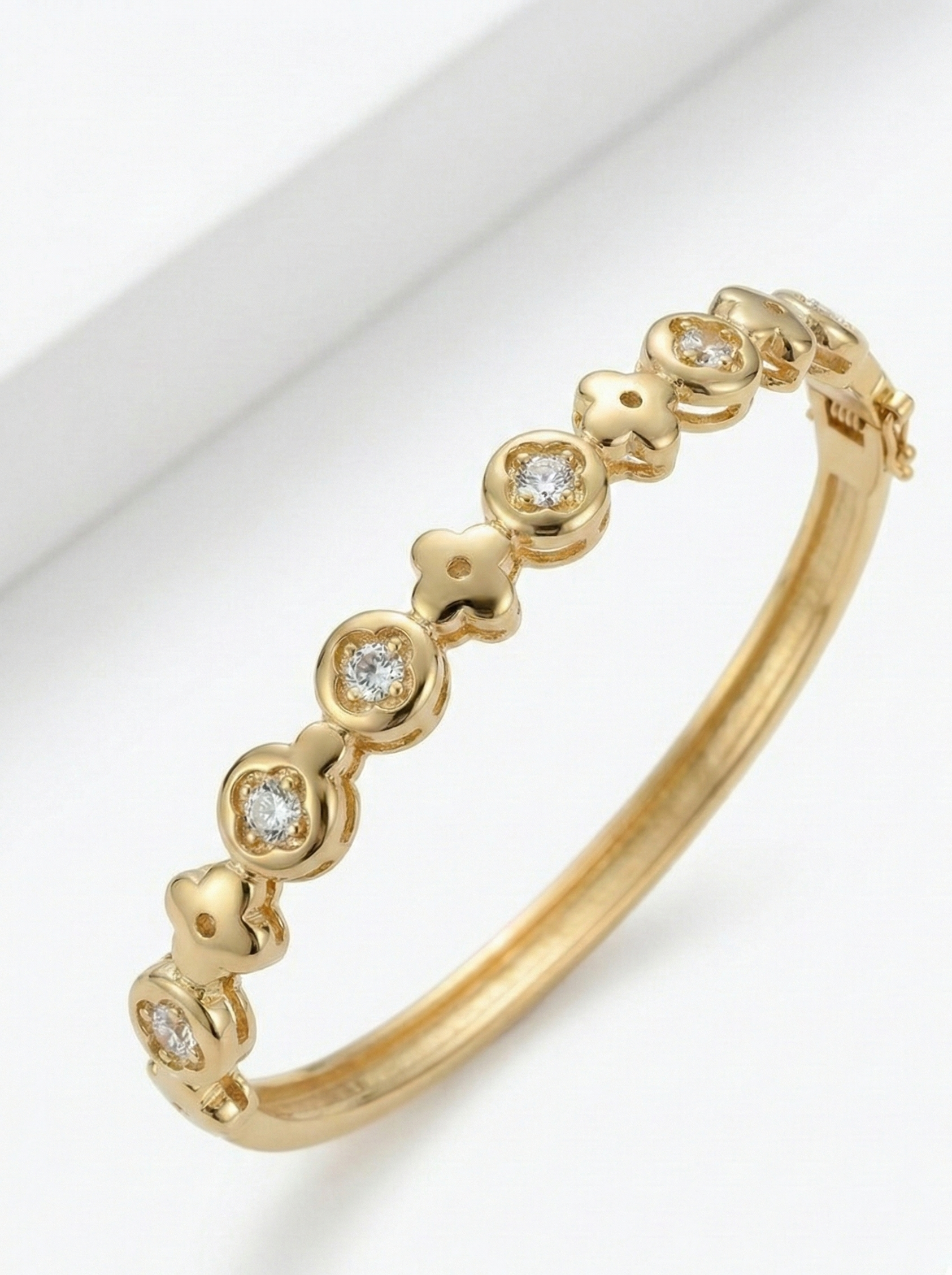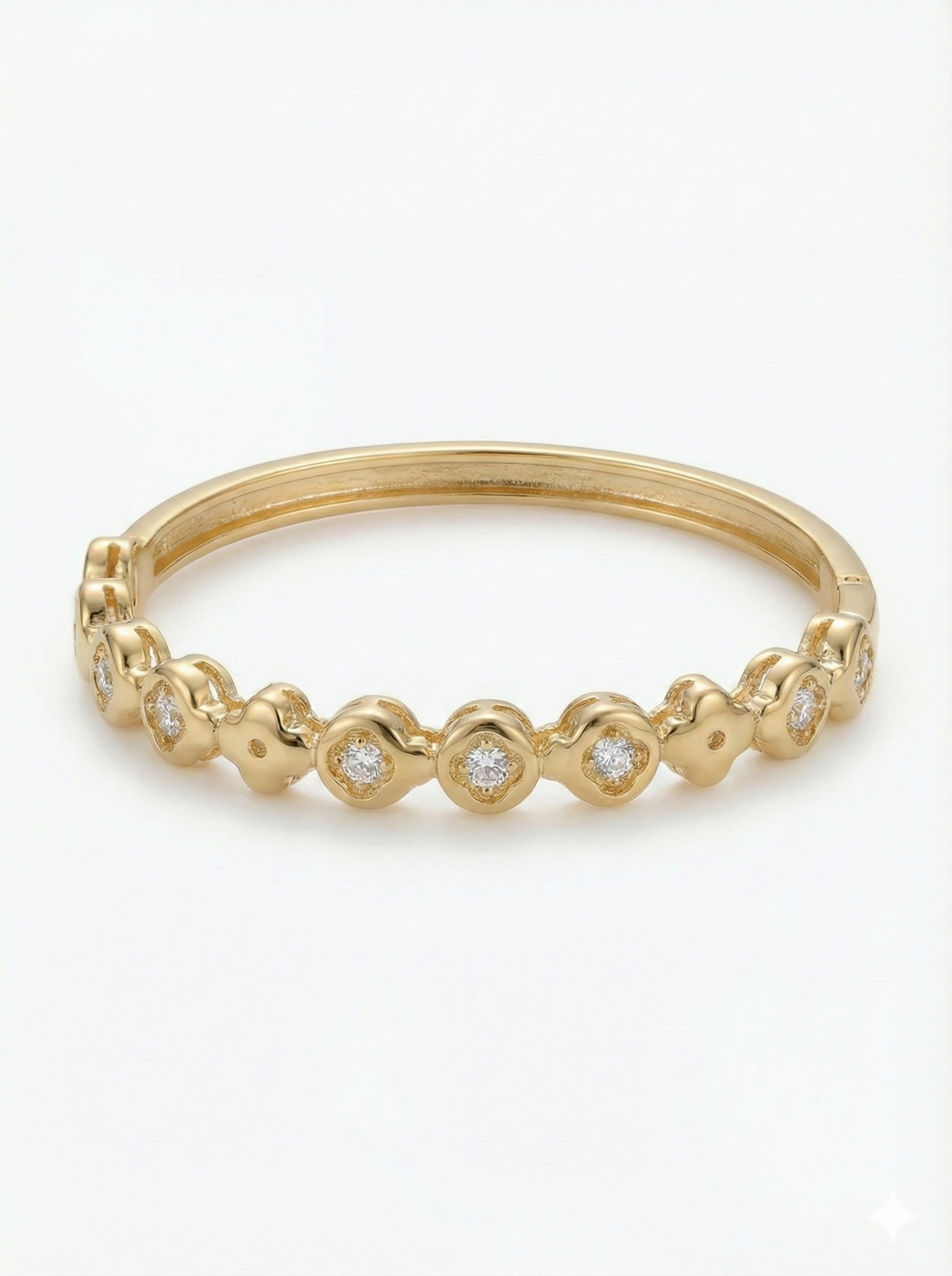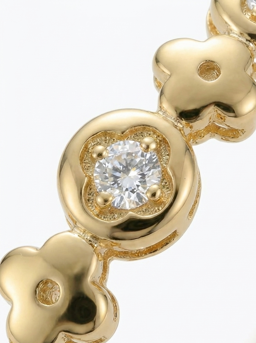 İnce ve zarif formdaki bu bileklik; yonca/disk detaylarının arasına serpiştirilen ışıltılı taşlarla bileğinizde yumuşak bir parıltı bırakır. Tek başına takıldığında sade ve şık bir imza parçası olur; saat ya da ince zincir bilekliklerle birlikte kullanıldığında ise zahmetsizce katmanlı, modern bir görünüme dönüşür. Minimal, feminen ve her stile uyumlu — kombin tamamen sizin.